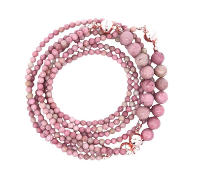 The 10 WAY NECKLACE™ is available in 30+ colours and with a variety of crystal, metal, pearl, or natural stone finishes.