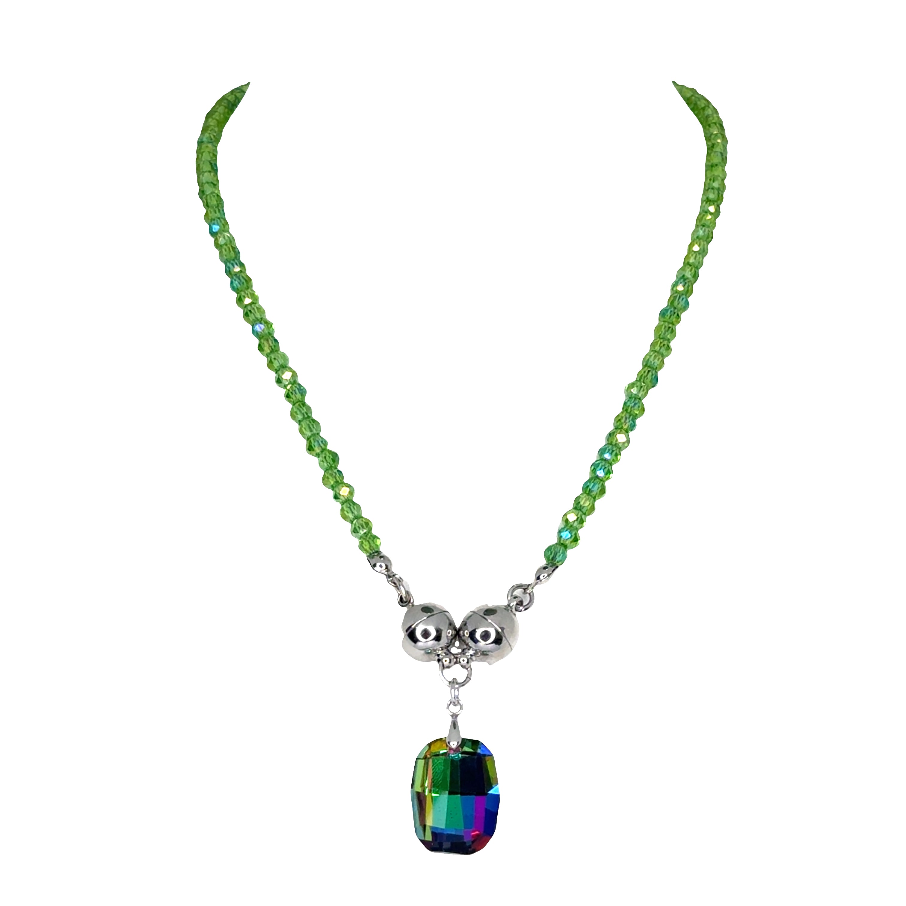 The stunning Baby Cushion Rainbow pendant is a lovely faceted imperfect rectangular shape pendant in vibrant rainbow colours.