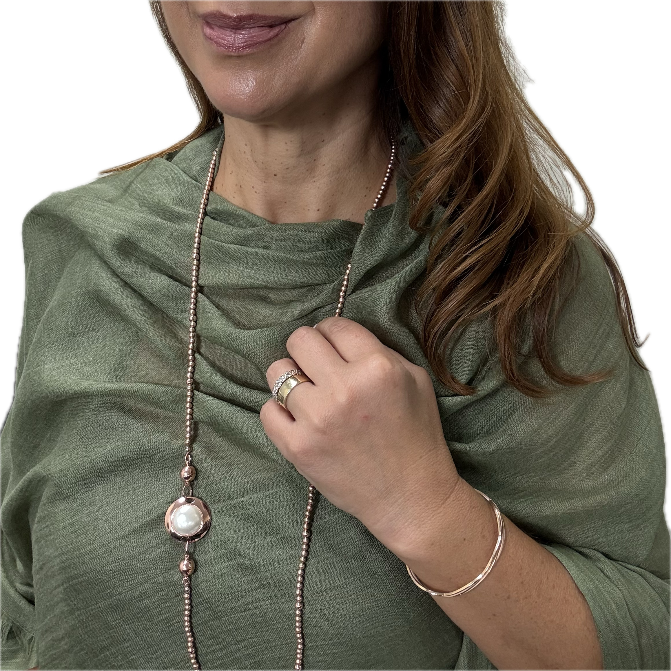 The Long Strand Necklace in Satin Rose Gold is made up of 4mm round beads and is 93cm in length and can choose any colour magnet you like. It can be used to create even more styles with the 10 Way Necklace and looks great on it's own worn as a necklace or as a multi-wrap bracelet. You can also add the pendant for a classic look.