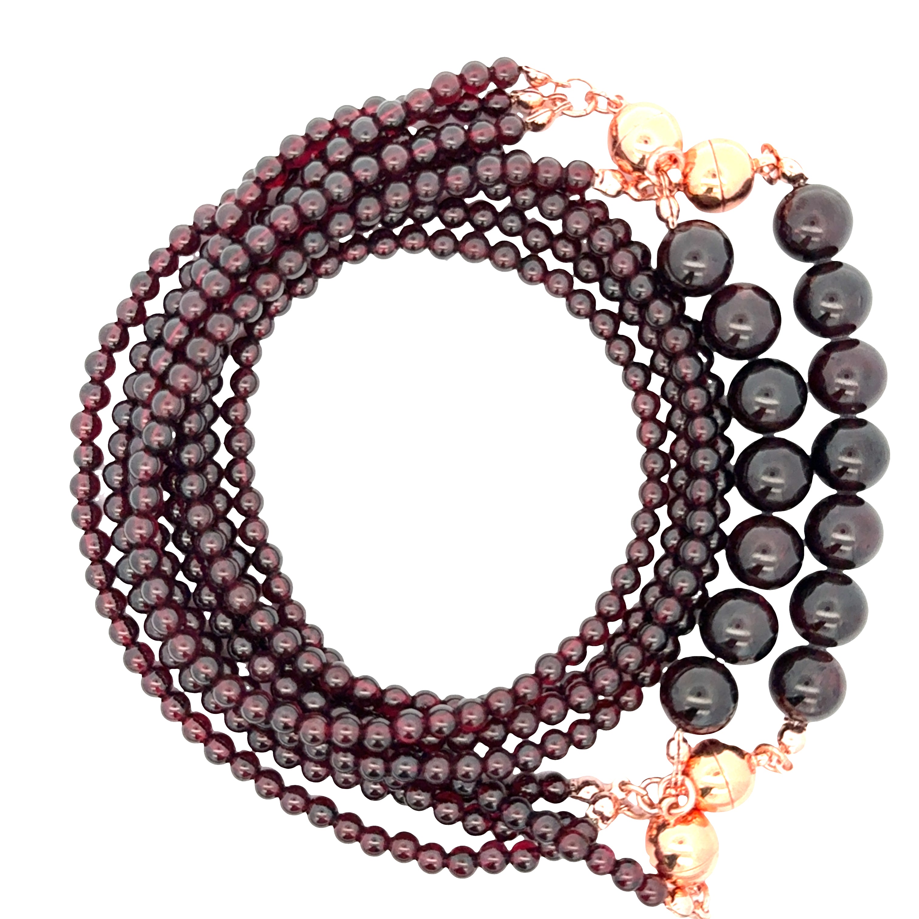 We offer the GARNET natural stone in a 10 Way Necklace, tassel, Medium Strand Necklace, and mini connectors.
