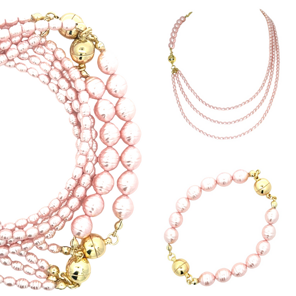 We also offer the PINK Shell Pearl collection in the 10 way necklace, tassel, mini connectors and long and short earrings.