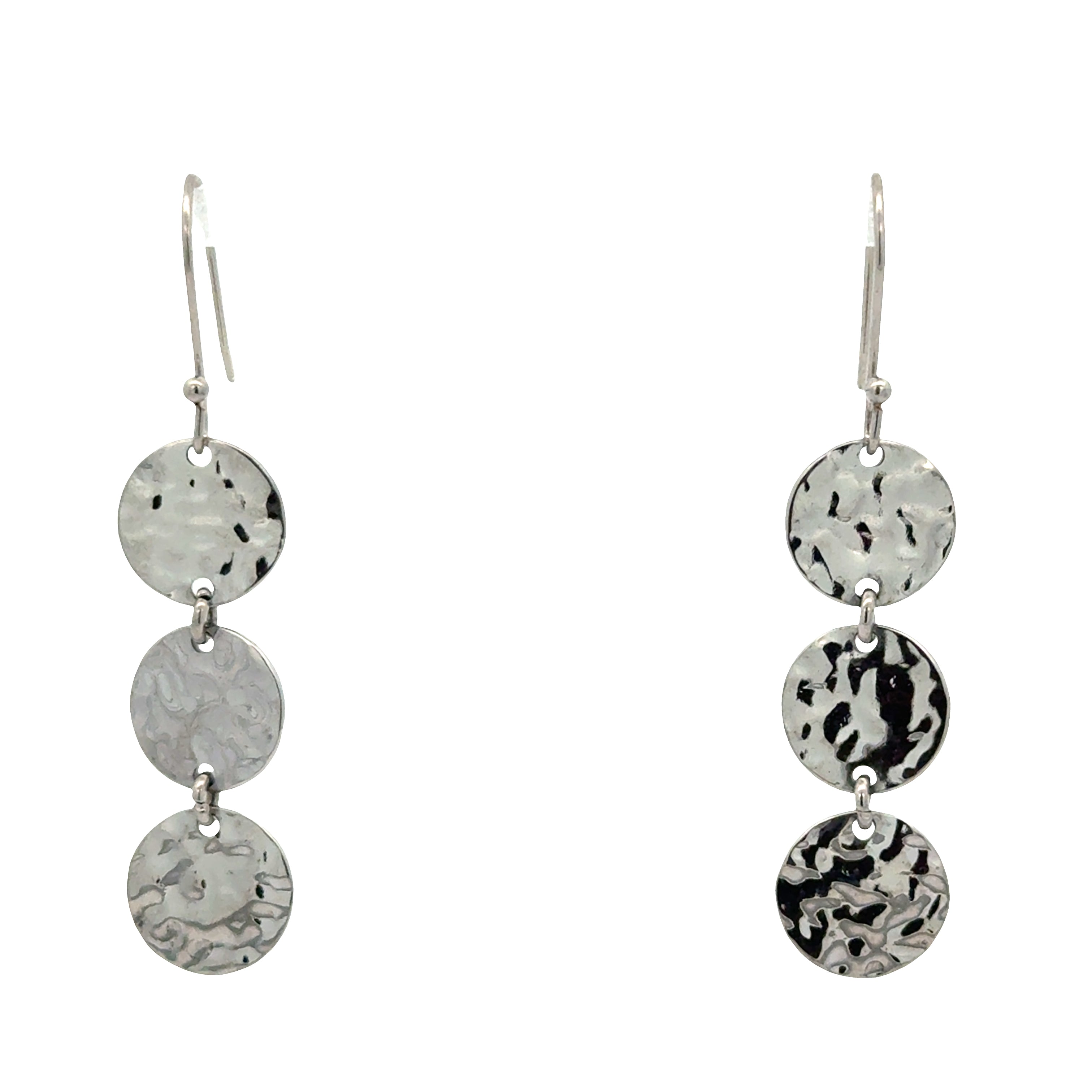 Earrings - Hanging - 3 Beaten Discs - Maria Nicola