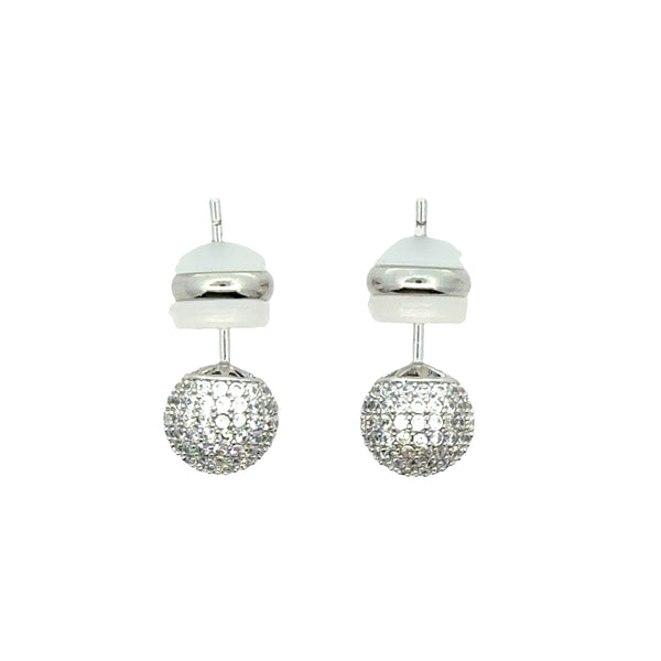 Add everyday sparkle with our 8mm pavé sphere stud earrings. Featuring brilliant clear crystals set in a perfectly rounded design, these studs are timeless and versatile. Finished with a comfortable silicone flat back for secure all-day wear.