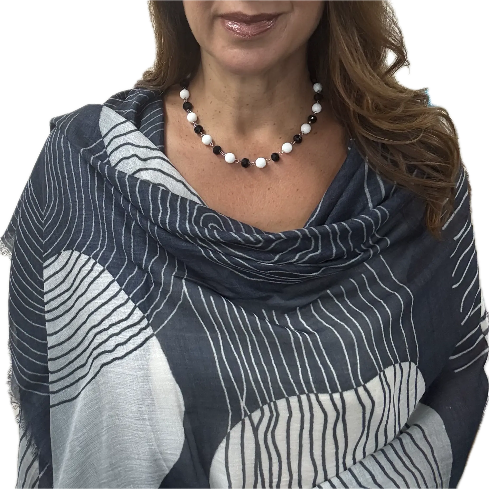 The Black and White Stripes has the monochrome palette of blacks, whites, and greys, paired with elegant linear and circular patterns, makes it a chic addition to any outfit.