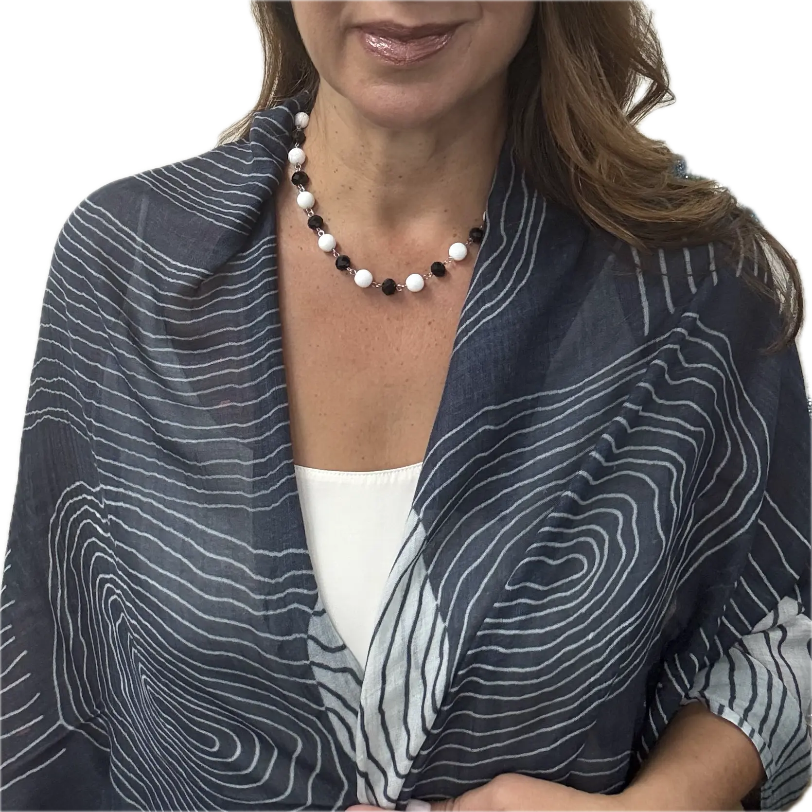 The Black and White Stripes has the monochrome palette of blacks, whites, and greys, paired with elegant linear and circular patterns, makes it a chic addition to any outfit.