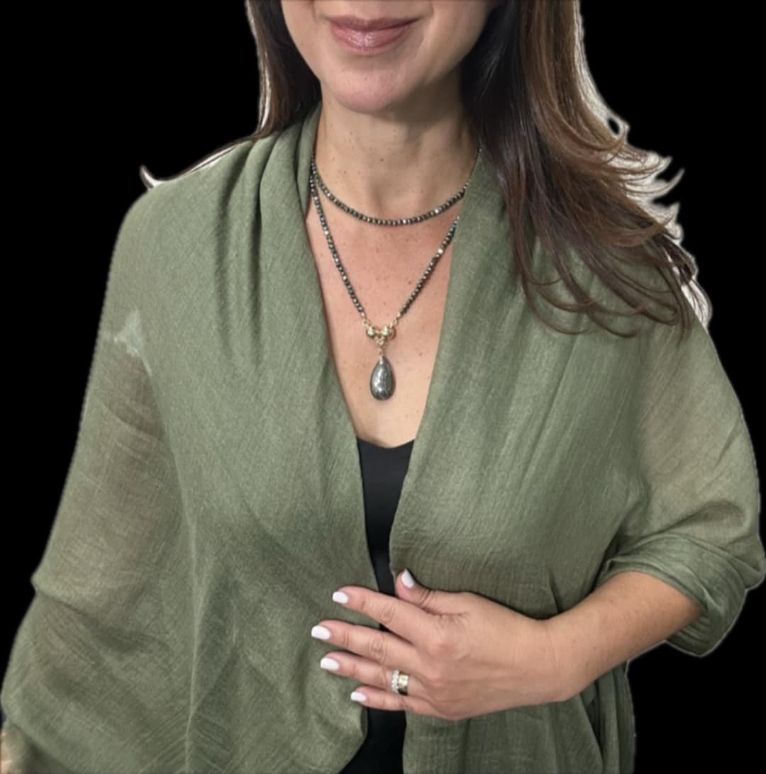 A beautiful loose weave Bamboo scarf in the spectacular Sage/Khaki! The perfect accessory to your creative styling.