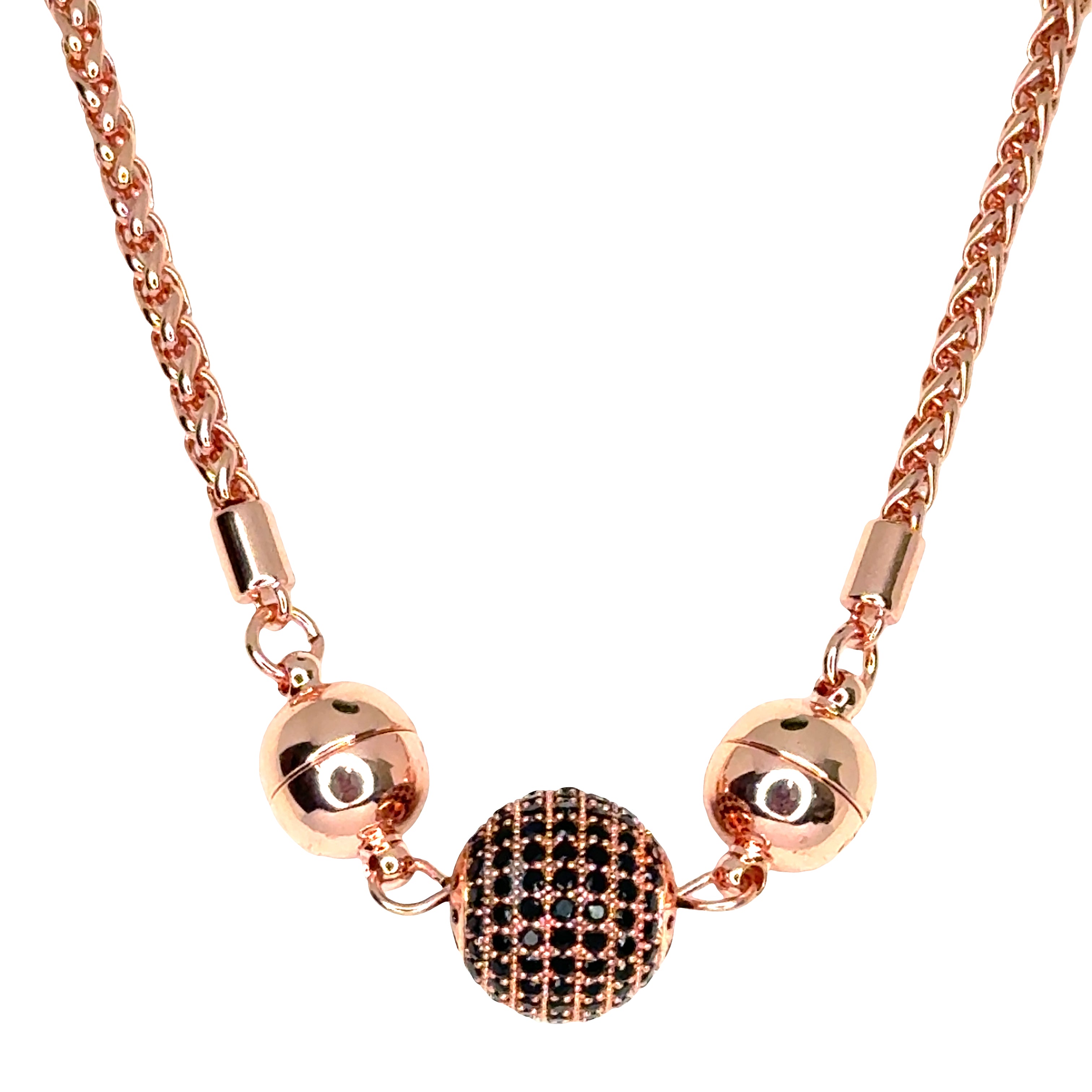 We ensure that our magnets are a beautiful quality that never lose their magnetism. They are double plated with either rhodium, real rose or yellow gold. Please keep in mind that the use of perfumes, chemicals like hairspray and moisture may have an effect on the colour. As will the acidity in your skin that can vary over time. We have had customers that have owned a 10 Way Necklace for years and the colour of magnets are as good as when they purchased it. Everybody is different.