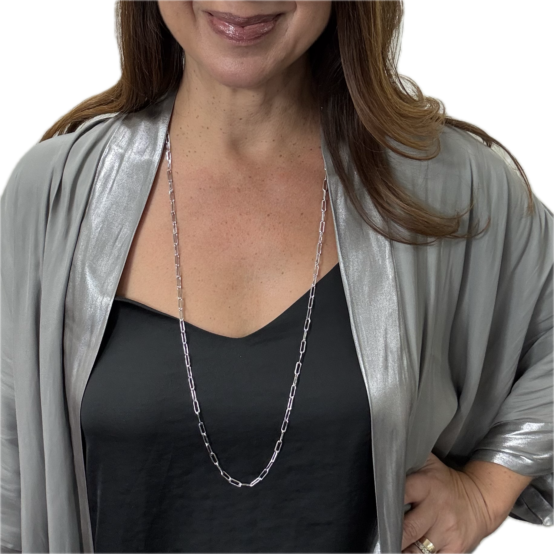 Long Strand Necklace - Paperclip - Silver
