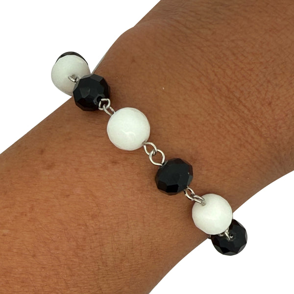 This Longer Link Bracelet is made of the of a classic combination of White faceted Agate Stone and Black Crystal in the 10mm size. It can be styled beautifully with the entire 10 Way Necklace range to be worn short, medium and long.
